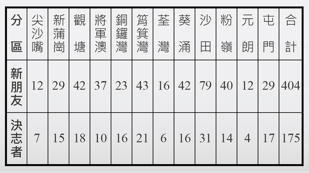十一月份全教會各分區均有福音聚會,眾聖徒同心興旺福音;福音朋友總數達404人,決志者共175人。請聖徒繼續為決志者禱告,並邀請他們參加福音慕道班。