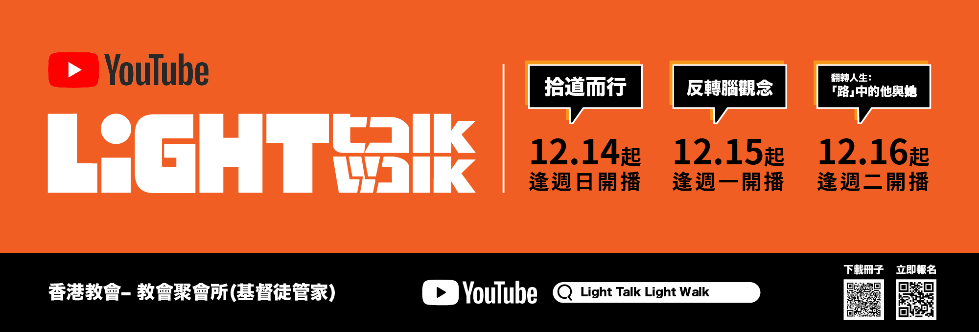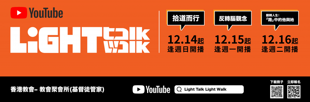 為幫助聖徒以靈活方式追求聖經真理 ,教會新設一個網上頻道 《Light Talk。 Light Walk》(拾 道 而 行 )。